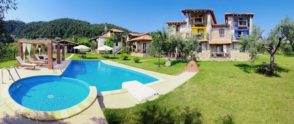 Conveniently located in the north-east of Halkidiki, on the coast of Sithonia peninsula, a secluded vacation complex of 8 apartments offers comfortable accommodation for families and couples. It stands 200 meters away from the sea and in walking distance, there is a good selection of taverns, shops and some bars. 10 minutes by car is a coastal town, offering a wider choice of shopping and entertainment.