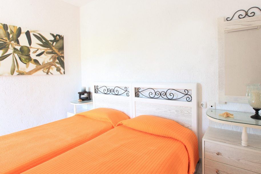 SKT044  Nice apartments for a couple (2 guests), offering 1 bedroom with double bed, 1 bathroom and a big furnished balcony with garden or pool view. Decoration is inspired by nautical sea style and is very bright, airy. The kitchen comes with all the basics you need - fridge, hob, kettle, toaster, cutlery and utensils for food serving.