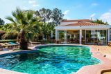 Shared swimming pool, sun loungers, umbrellas