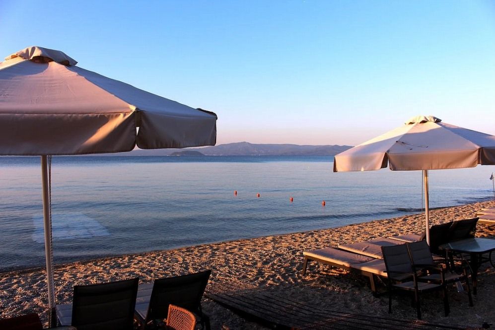 Private sun beds, dinning table, hammocks, coffee tables and umbrellas awaits you, while you can also experiment with the canoes and the sea bicycles! There is a beach volley court for the athletic personalities and plenty of space for beach tennis as well as a shower.