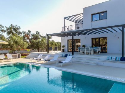 Комфортабельная вилла, площадью 80 кв.м. с 2-я спальнями и частным бассейном расположенная всего в 75 м. от песчаного пляжа. На вилле просторная гостиная с раскладывающимся диваном, столовая, полностью оборудованная кухня, 2 спальни и 2 ванные комнаты. Около виллы расположен цветущий сад газоном, большой бассейн, площадью 75 кв.м., в окружении просторных солнечных террас. С уровня бассейна открывается захватывающий прямой вид на море. Организованный песчаный пляж расположен в 75 м. от виллы. Магазины и рестораны расположены в 200 м от виллы.