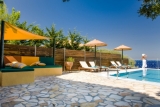 Комплекс имеет идеальное расположение на небольшом склоне холма всего в 300 м от берега в девственно тихом месте, откуда открывается панорамный вид на Ионическое море и живописные зеленые окрестности. Первый этаж состоит из открытого плана столовой/гостиной и полностью оборудованной кухни: с электрическая плита/духовка, холодильник, стиральная машина, утюг/гладильная доска, чайник, тостер, кофеварка. Зона отдыха со вкусом оформленна деревянной и плетеной мебелью, имеет камин. Существует спутниковое ТВ, DVD- плеер, CD-плеер и коллекция фильмов/книг. На этом же уровне есть w/c. Деревянная лестница ведет на верхний уровень, где находятся две спальни и ванная комната с ванной-джакузи и душевой. В главной спальне установлена двуспальная кровать, шкаф для одежды, есть телевизор и сейф. Во второй спальне – две односпальные кровати, шкаф для одежды. На ухоженном участке вокруг бассейна с шезлонгами и зонтиками, на террасе есть стол с креслами.
