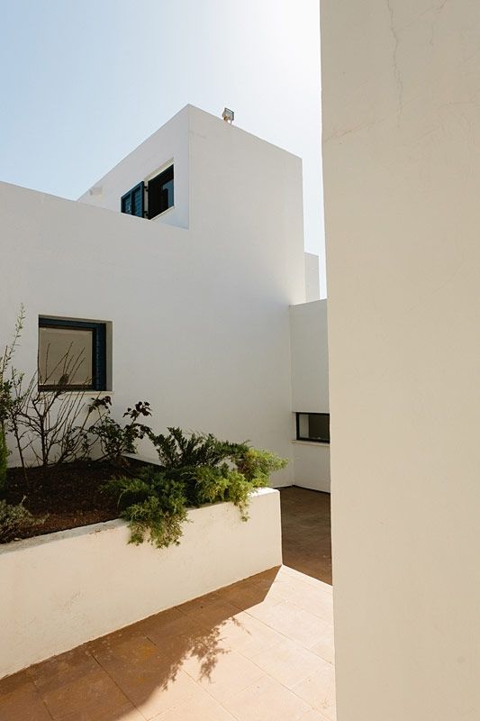 The villa is located on a hill, 50m from the sea, on 4000 square metres of land overlooking the Aegean sea and the temple of Possidon in Sounio. It is a private residence of 250 square metres, designed by a well known Greek architect, Manetas. It combines the principles of modern architecture with the ones of Greek traditional Aegean architecture keeping its dimensions small and human and fitting nicely with the nature of the 4000sq metres property surrounding it. In the interior of the house the simple built beds and sofas create a fully functioning environment for relaxed living.