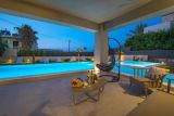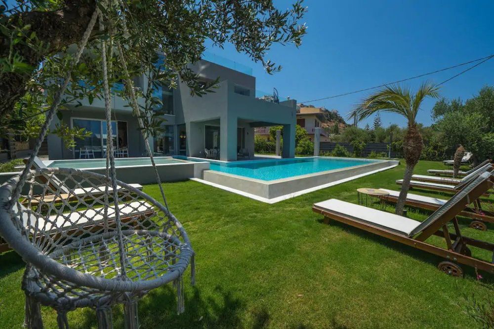 The large sliding doors lead to the very well designed outdoor space, where you can find two swimming pools “waiting” for you and your little friends to jump in and please your souls. There are sunbeds and umbrellas for everyone of you! The sandy beach is at 200 meters and it is well organized with beach umbrellas and sunbeds. There you can also find restaurants, supermarkets, shops, bars and everything one might need for their holidays. For more choices, the beautiful & vivid city of Chania with lots of interests will satisfy your senses in every way.