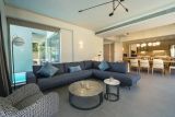 On the ground floor the villa has a fully equipped kitchen with dining table and a cozy living room ready to offer you and your friends relaxing moments during day & night.
