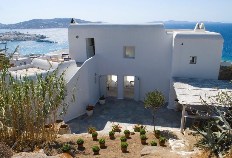 A cozy house in a lush terraced garden, stands within 3-minutes walk to the old town of Mykonos is available for rent. The house of traditional mykonian architectural style is located in a large terrassed garden overlooking the town of Mykonos and the surrounding islands. Although ,at a few minutes’ walk to the harbour and the night life and restaurants ,the guests enjoy a particularly quiet and serene enviroment .