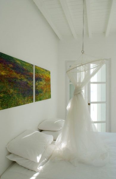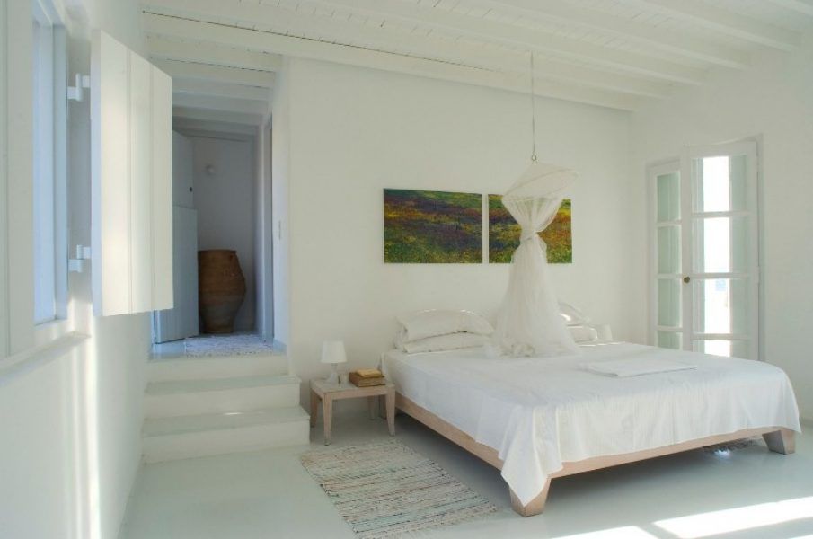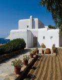 Villa stands on expansive grounds, with many of trees and flowers. The garden complemented with a splash pool (with hydro massage). Up to eight cars could be placed in the parking area. Nearest beach is only in four minutes drive, the airport 10 minutes from the villa. Of course, the villas’ privileged position allows quick access to all the essential infrastructures of Mykonos town. In addition, if you have time, go on to explore the tiny archaeological gem of Delos, just a short boat trip away. Delos was a sacred island in ancient times, and according to mythology was the birthplace of the twin gods Apollo and Artemis.