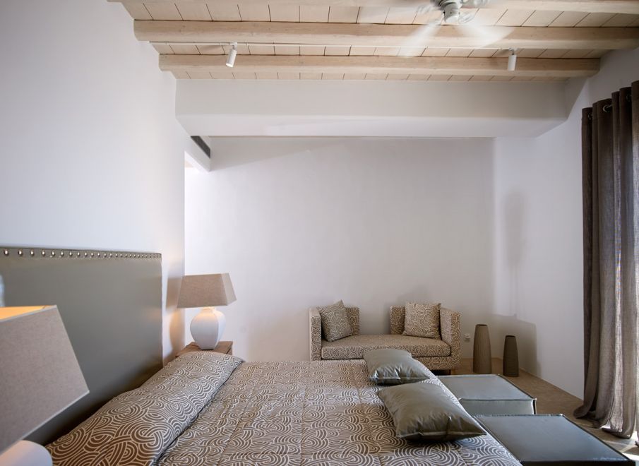 A luxurious private villa with sea view offered for rent in Mykonos, located within 300 m from a bay. This unique villa boasts its privileged location – just between two fantastic sandy beaches, in short walking distance from both, really quite spot inside cosmopolitan destination. The villa stands in almost private bay with the possibility to moor a boat. Amazing views of the Aegean Sea and the islands of Paros, Naxos and Antiparos are guaranteed.