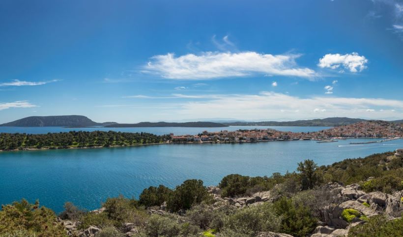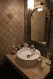 On the first floor, you can find one more living room with a large fireplace and comfortable sofas. This area incorporates also the dining zone and is linked to a kitchen, decorated in a traditional style. Patio doors open to a huge balcony with spectacular views of Porto Heli and neighboring Spetses island.