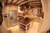On the ground floor, there is a spacious lounge with sofas, 3 bedrooms (1 double, 1 twin and 1 single) and a fully equipped kitchen. Kitchen comes with all you may need when cooking - full size refrigerator with ice maker, dishwasher, toaster, coffee maker, microwave and full set of dishes, cookware. All bedrooms are equally spacious, with satellite TV, ensuite bathroom (features hydromassage) and large windows. Wireless internet access provided throughout the whole villa for most convenience. Lounge opens directly to the main terrace with pool and dining area.