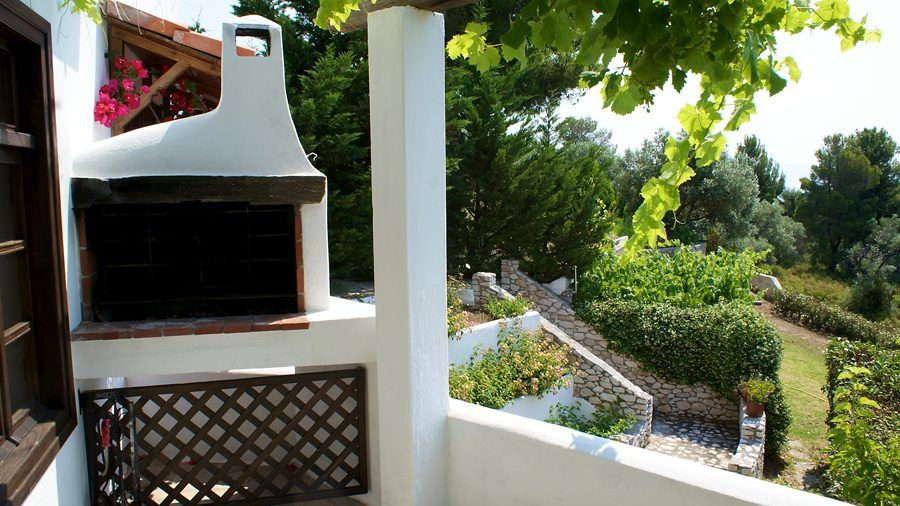 Villa features very interesting semi-circular layout, made with whitewashed stone walls and wooden shutters matching the traditional local architectural style. Conveniently located within short drive from the beach, airport and Skiathos town it is a perfect summer holiday destination.