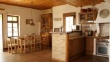 The apartment is decorated in a countryside style with a large open-plan kitchen, dining area and living room. Wooden floors, beamed ceilings, cushioned wooden sofas and a stone fireplace help to create cozy homey atmosphere. Kitchen has all the modern appliances and tools you may need for self-cooking. For most convenience, there is satellite TV, DVD player and wireless internet access provided.